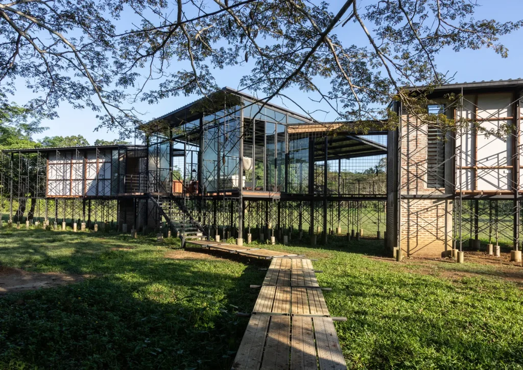 Le choix des matériaux découle de conditions culturelles, climatiques et économiques, activant des formes inattendues de ventilation de l’air, de seuils ombragés, d’appropriation spatiale et d’expérience esthétique.