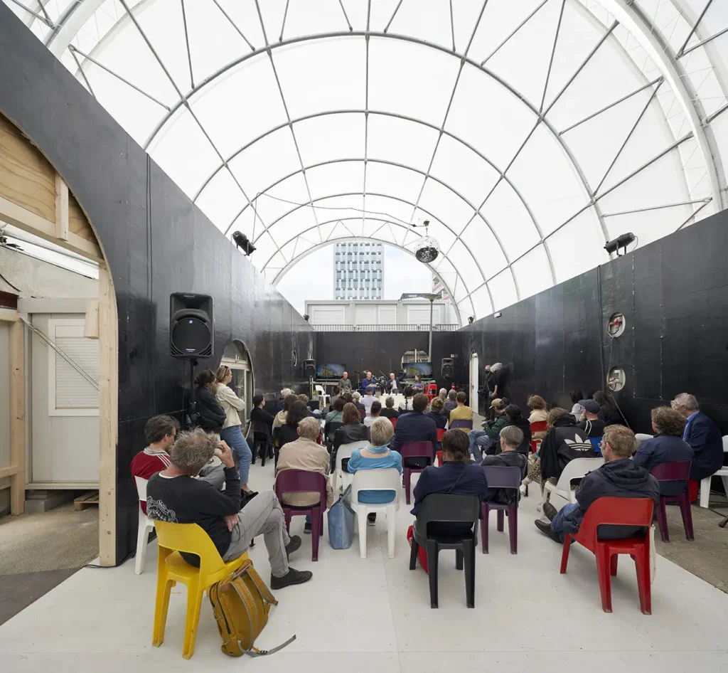 raumlabor est un studio d’architecture travaillant sur des transformations urbaines à multiples niveaux de manière expérimentale depuis 1999. Le studio adopte le terme pratique urbaine pour décrire une façon de travailler sur la ville dans son ensemble, de manière trans-disciplinaire à non disciplinaire. Leur travail est guidé par la conviction que la ville se co-produit entre tous, comme expression physique de l’activité collective continue. Ils développent des structures qui rassemblent les gens, activant l’action commune face aux tendances à l’isolement. raumlabor explore les communs comme forme de gouvernance urbaine, favorisant l’auto-organisation, la coopération et des réseaux évolutifs d’activités interconnectées.